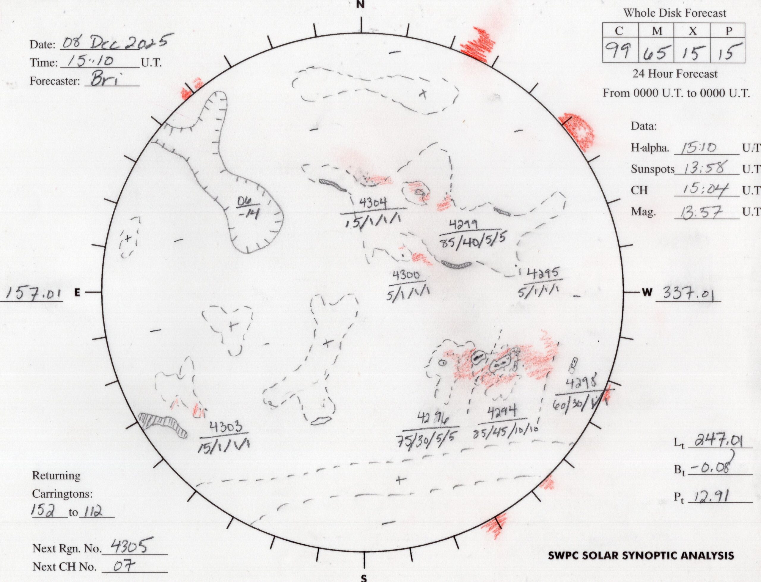 本日のまとめ:08日の午後、大規模(X級)フレアが南半球西側の4298で発生しました。これに伴うCME到着予測も出されています。活動は活発で、中規模も多発。中規模由来のCME到着予測もあります。黒点数は146、地磁気はSum 03 前後。詳報は各セクションへ。