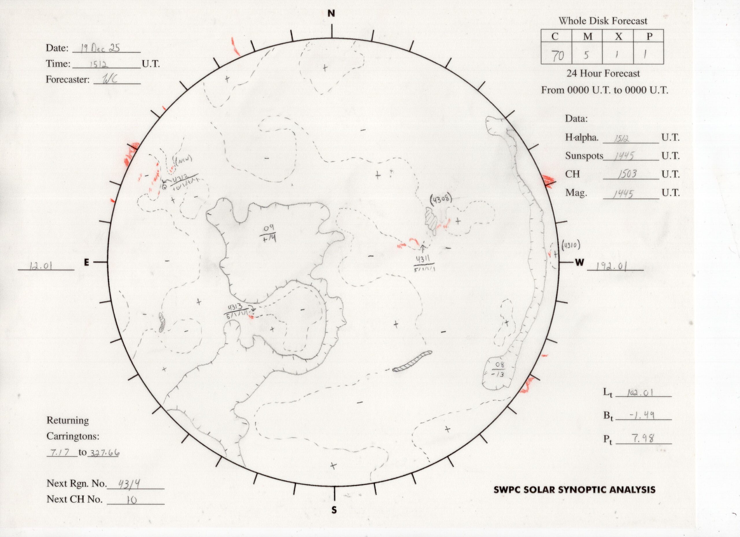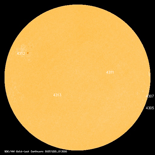 本日のまとめ:南半球西端の4307で中規模(M級)フレアが発生。黒点数は033、地磁気はSum 09 前後。詳報は各セクションへ。