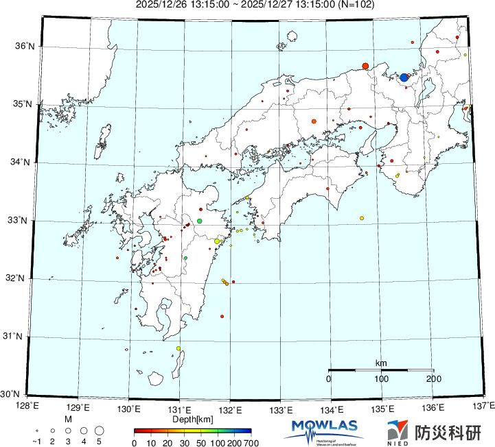 | 日付 | 時刻 | 規模 | 領域 | 備考 |