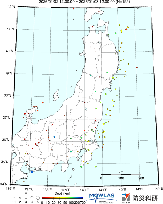 - 01/02 22時頃~01/03 19時頃(北半球東側M7.1)