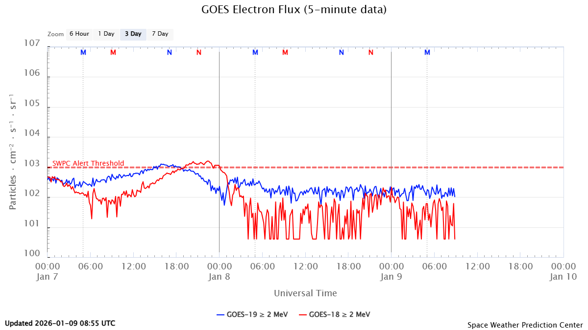 ※電子の増減傾向を確認。上昇時は衛星通信などへ影響することがあります。