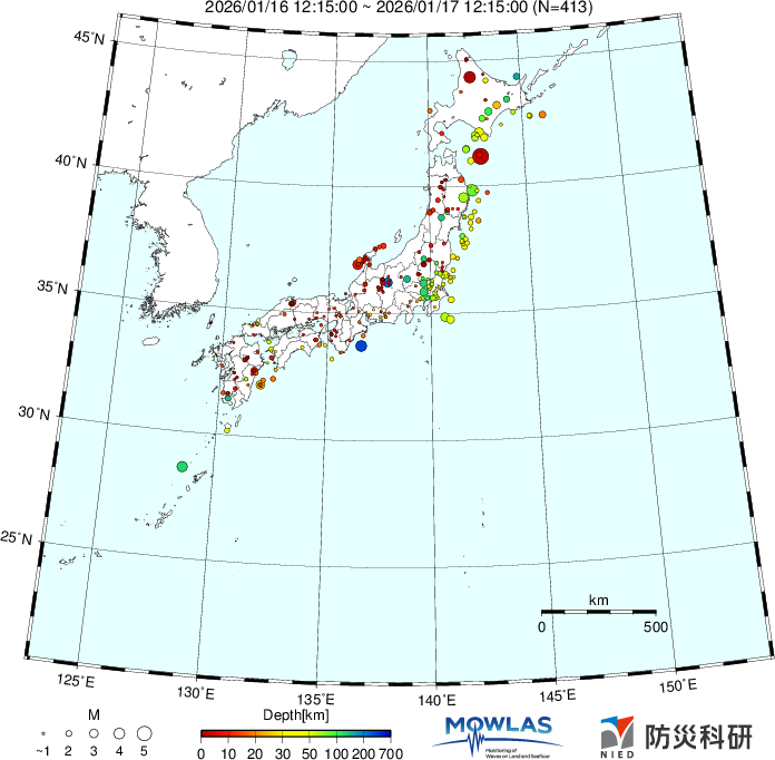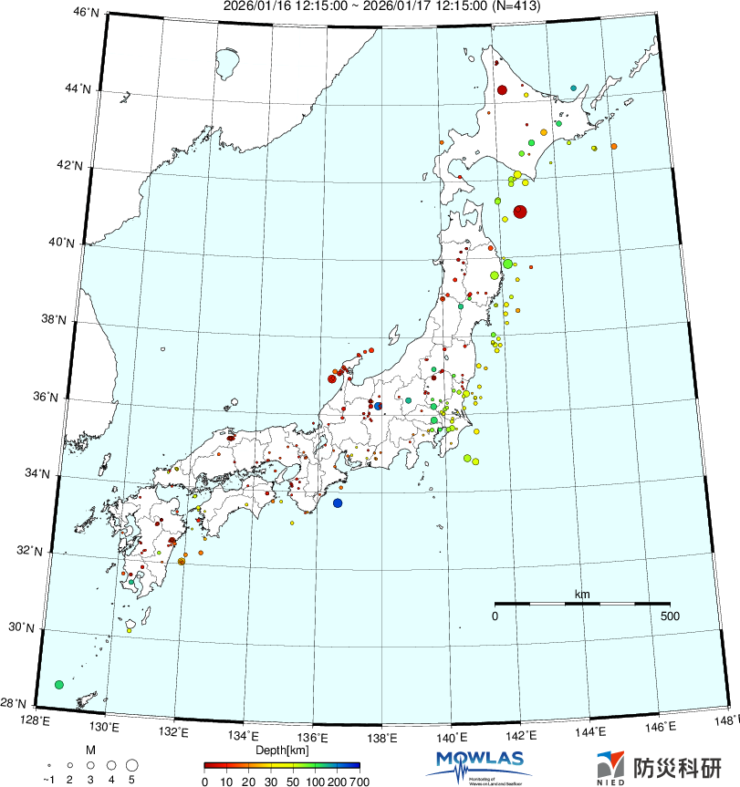 日本の地震画像(Hi-net)+USGS(クリックで展開)