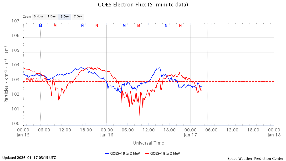※電子の増減傾向を確認。上昇時は衛星通信などへ影響することがあります。