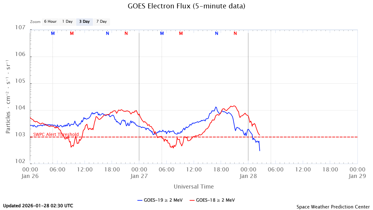 ※電子の増減傾向を確認。上昇時は衛星通信などへ影響することがあります。