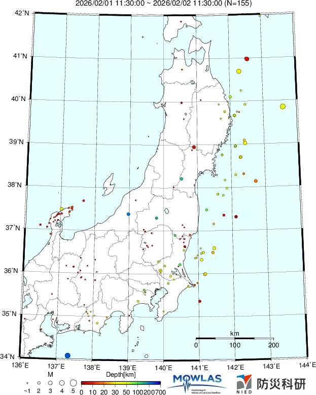 東北から関東の最新地震分布