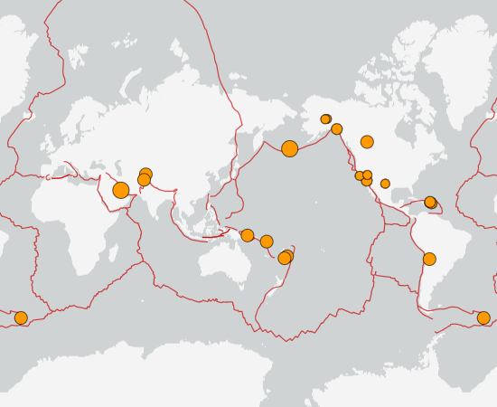 世界最新地震分布(USGS)