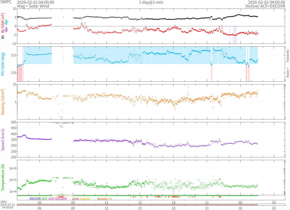 リアルタイム太陽風(NOAA)
