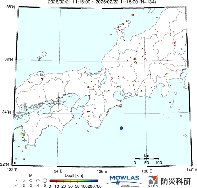 | 日付 | 時刻 | 規模 | 領域 | 備考 |