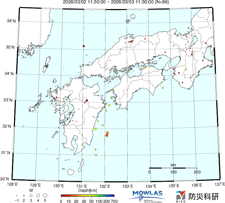 | 日付 | 時刻 | 規模 | 領域 | 備考 |