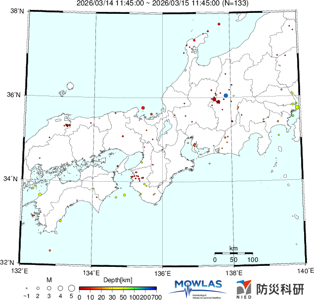 日本の地震画像(Hi-net)+USGS(クリックで展開)
