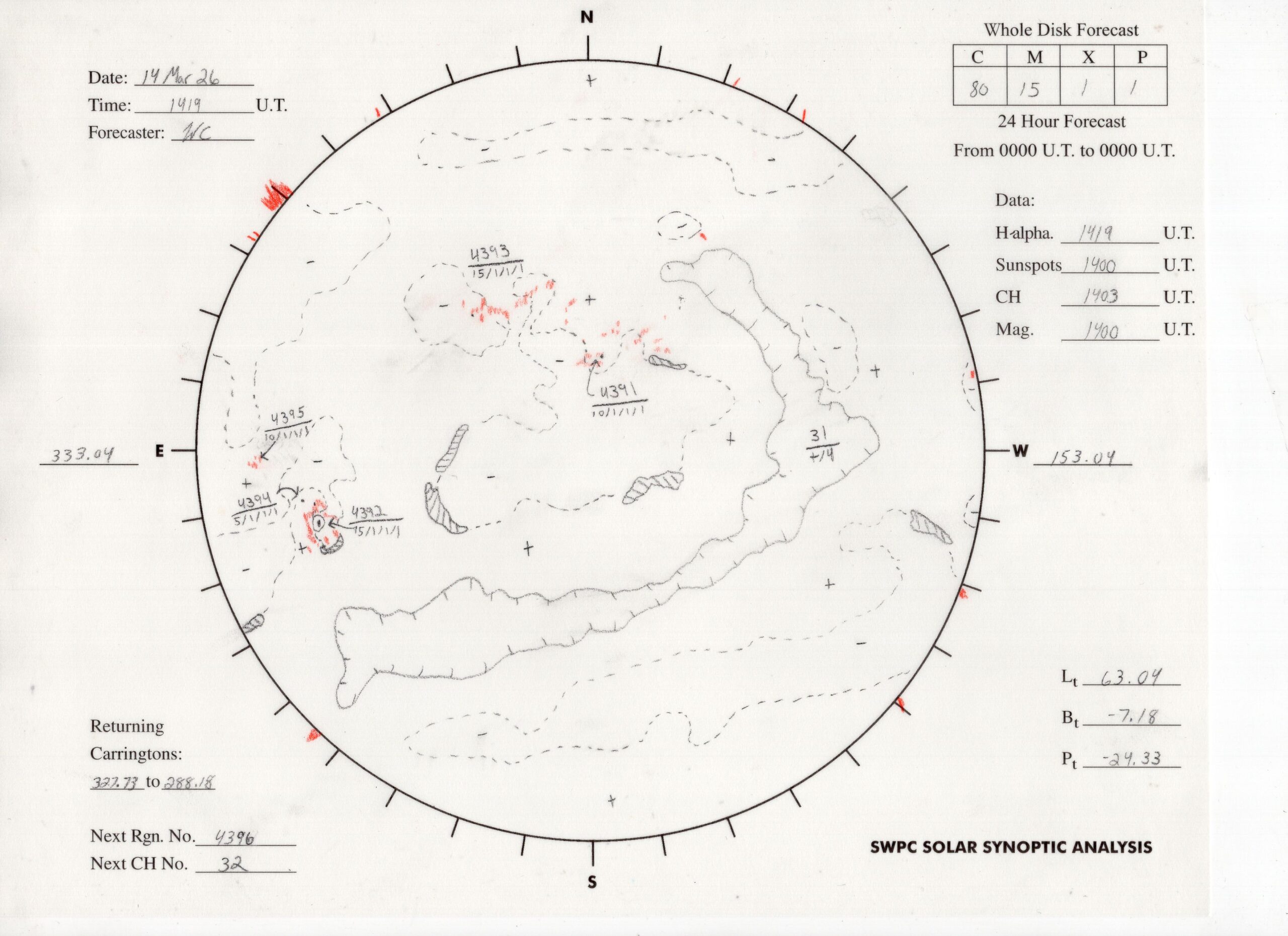 本日のまとめ:Cクラス中心に推移。太陽風の速度がさらに上がり、高速な状態。黒点数は085、地磁気はSum 28 前後。詳報は各セクションへ。