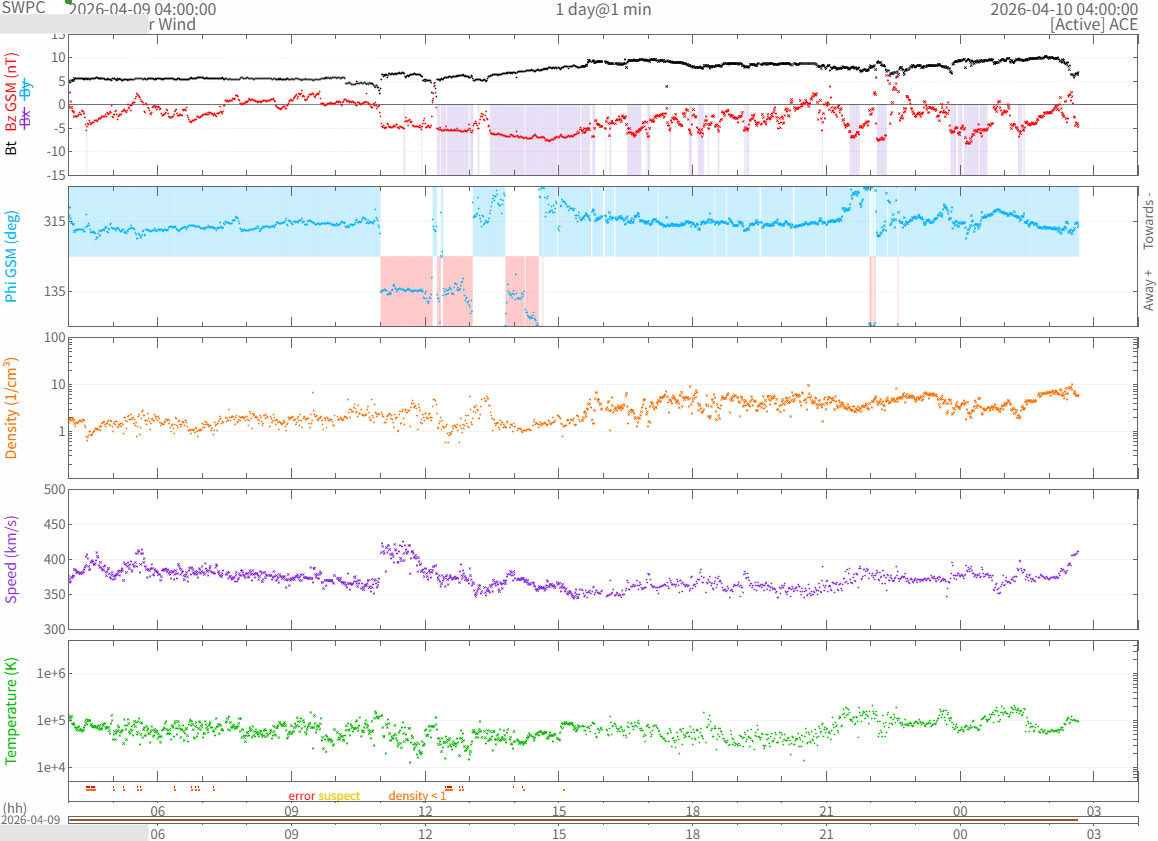 一時420km/s前後まで上がりましたが、現在400km/s前後で推移していjます