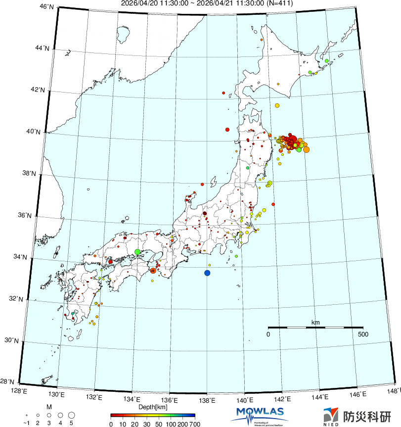 | 日付 | 時刻 | 規模 | 領域 | 備考 |