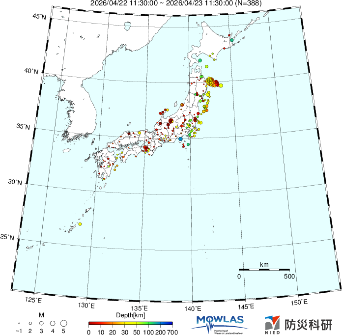 | 日付 | 時刻 | 規模 | 領域 | 備考 |