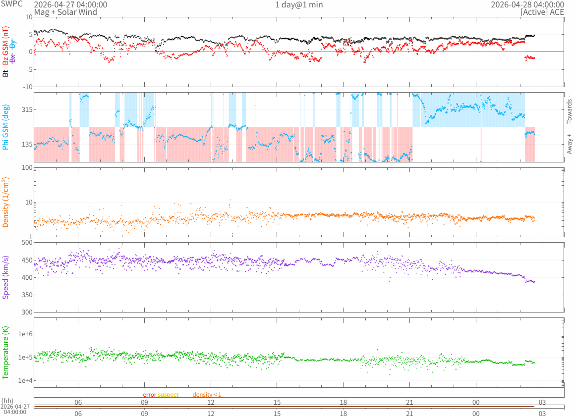本日のまとめ:活動はやや落ち着いてきた感がありますが、4420と4425の磁場タイプはβγδ型で、黒点数もそこそこあるので要警戒。黒点数は122、地磁気はSum 13 前後。詳報は各セクションへ。