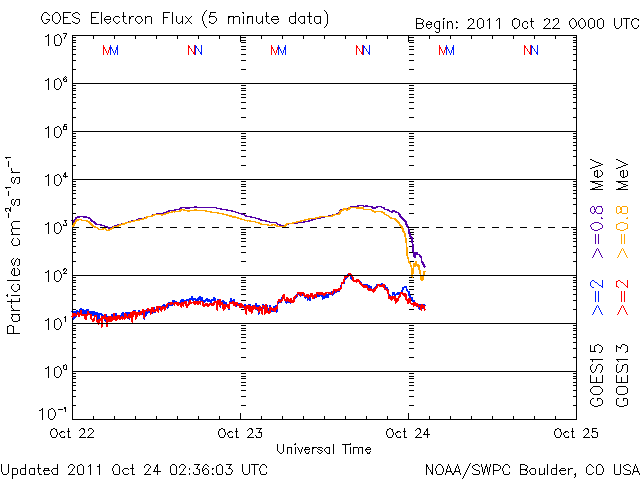 静止軌道電子は低い位置で推移していますが、チャートにやや乱れが見られます。
