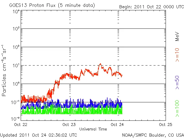 プロトンは一昨日のMクラスの影響で、プロトン現象が発生しています(程度としては大きくはないようです)。