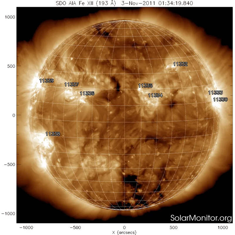 Space Weather.comに、11/3午前中(UST)にSDO衛星が撮影した、新たな1139の映像(カラー)が公開されていましたので、URLを添付しておきます。