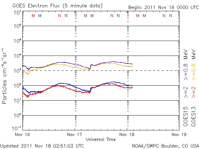静止軌道電子のチャートは緩やかな上昇と下降しています。