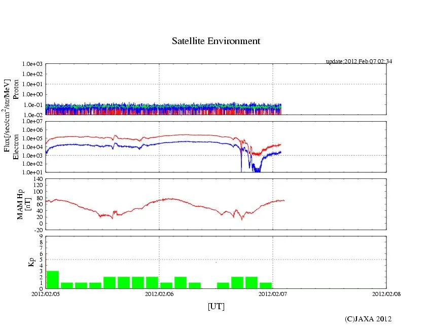 ※JAXAのETS8 MAMリアルタイム観測データのチャートは1目盛り=6時間なので、かなり見づらいです。時間の誤差に注意
