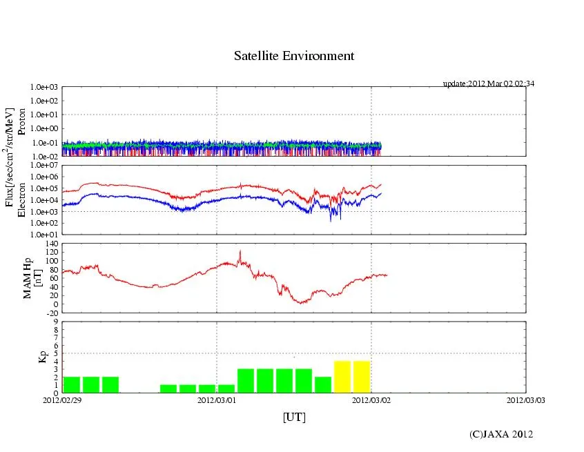 ※JAXAのETS8 MAMリアルタイム観測データのチャートは1目盛り=6時間なので、かなり見づらいです。時間の誤差に注意