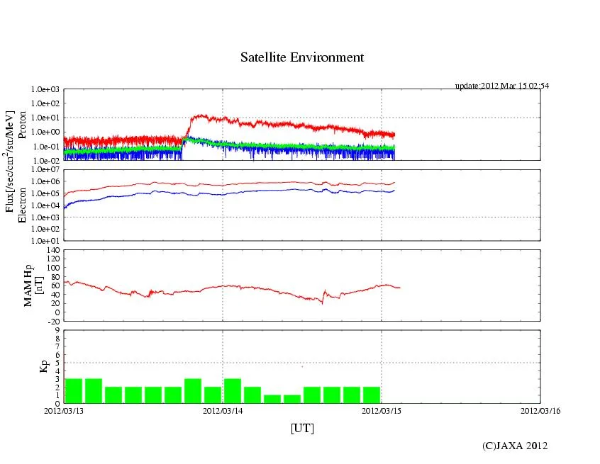 ※JAXAのETS8 MAMリアルタイム観測データのチャートは1目盛り=6時間なので、かなり見づらいです。時間の誤差に注意