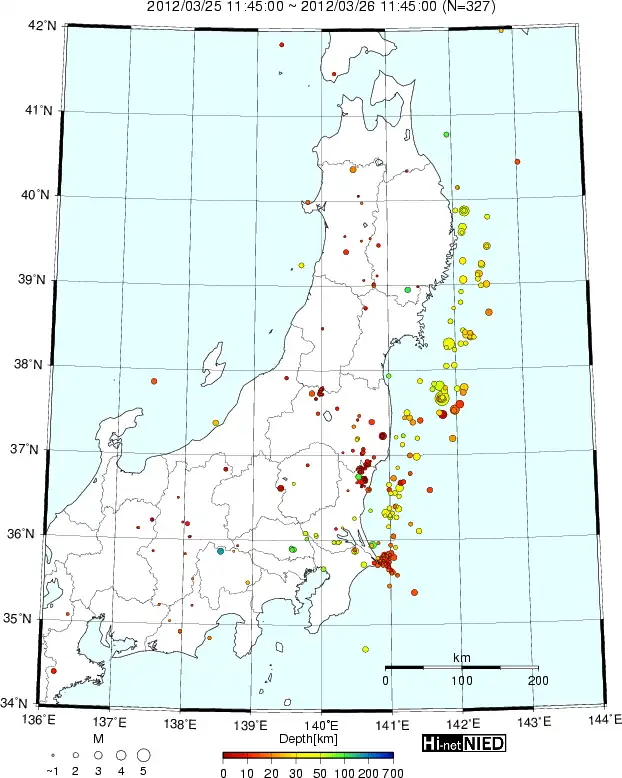 ●Hi-net東日本地震分布(過去24時間) ※クリックで拡大