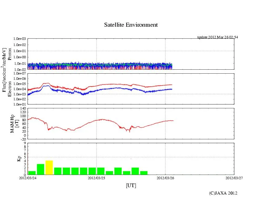 ※JAXAのETS8 MAMリアルタイム観測データのチャートは1目盛り=6時間なので、かなり見づらいです。時間の誤差に注意