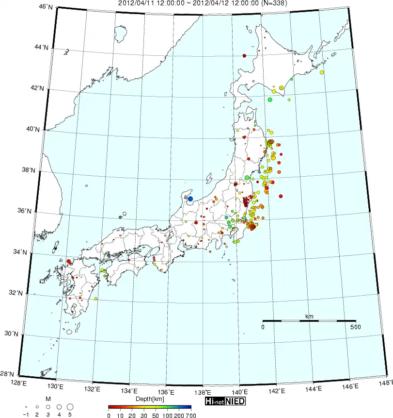 ●Hi-net日本地震分布(過去24時間) ※クリックで拡大