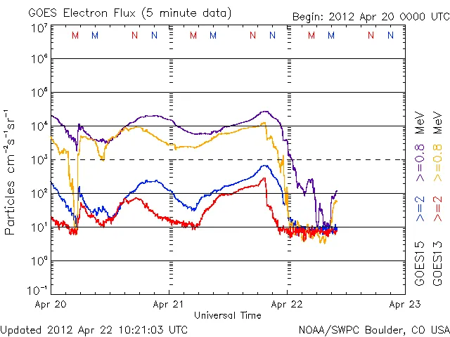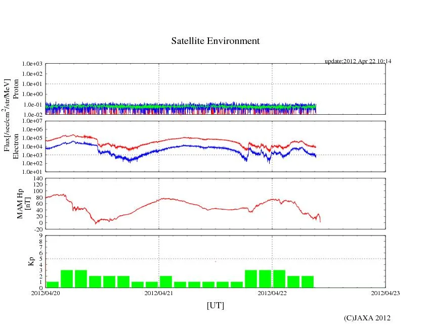 ※JAXAのETS8 MAMリアルタイム観測データのチャートは1目盛り=6時間なので、かなり見づらいです。時間の誤差に注意