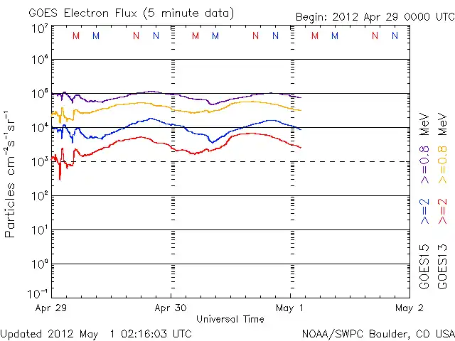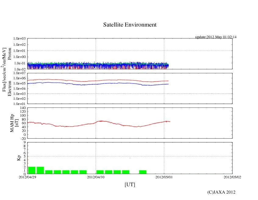※JAXAのETS8 MAMリアルタイム観測データのチャートは1目盛り=6時間なので、かなり見づらいです。時間の誤差に注意