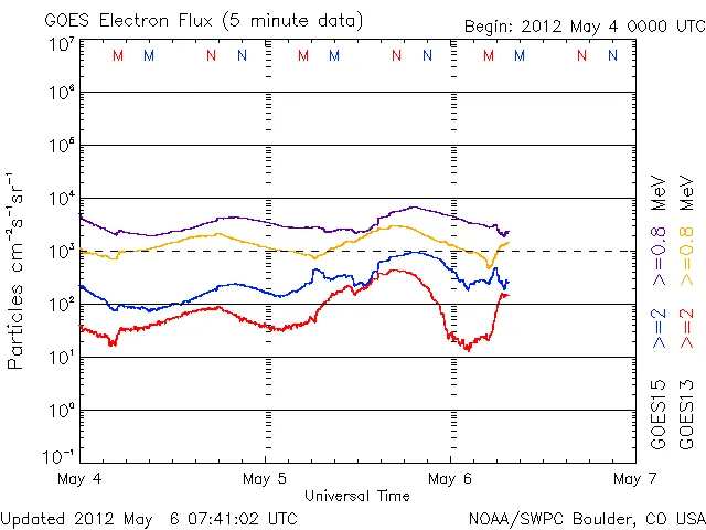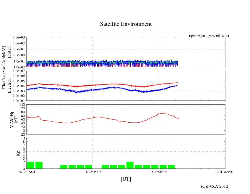 ※JAXAのETS8 MAMリアルタイム観測データのチャートは1目盛り=6時間なので、かなり見づらいです。時間の誤差に注意