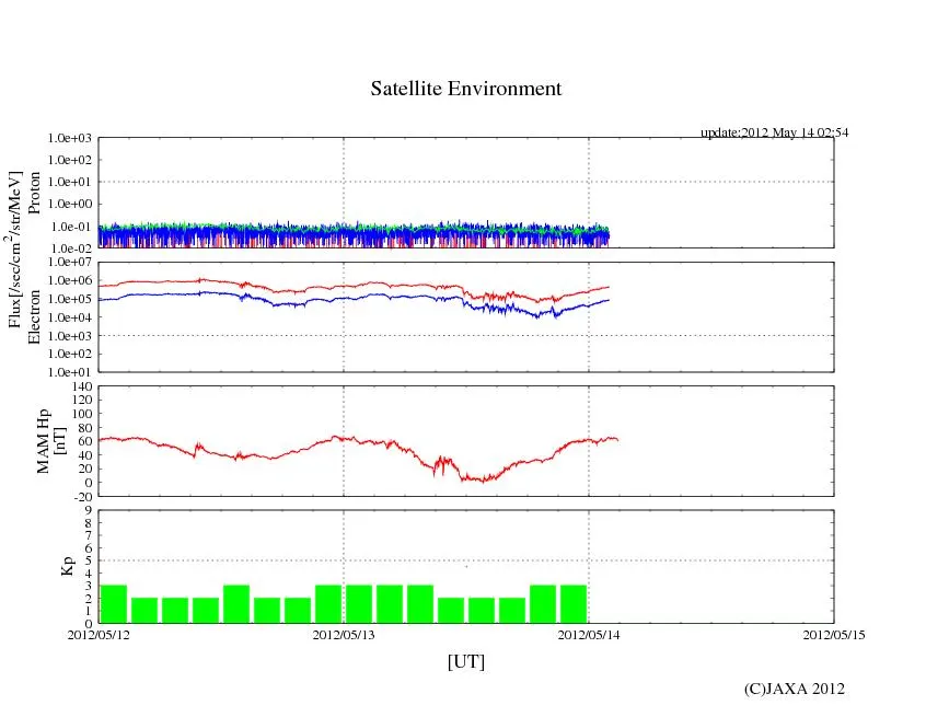 ※JAXAのETS8 MAMリアルタイム観測データのチャートは1目盛り=6時間なので、かなり見づらいです。時間の誤差に注意