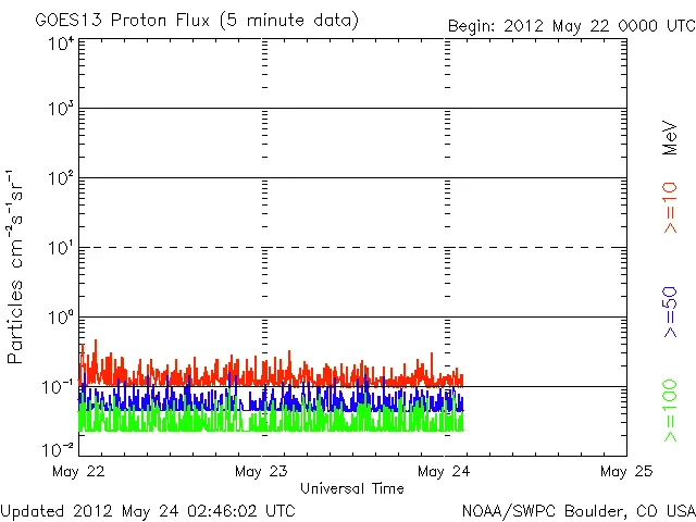 昨日のまとめ以降も徐々に上がり、一時は650km/sと高速な状態になりました。現在も600km/s前後で推移しています。