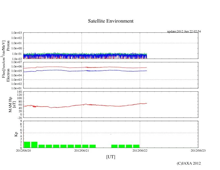 ※JAXAのETS8 MAMリアルタイム観測データのチャートは1目盛り=6時間なので、かなり見づらいです。時間の誤差に注意
