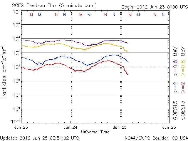 ※JAXAのETS8 MAMリアルタイム観測データのチャートは1目盛り=6時間なので、かなり見づらいです。時間の誤差に注意