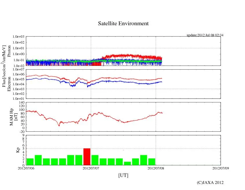 ※JAXAのETS8 MAMリアルタイム観測データのチャートは1目盛り=6時間なので、かなり見づらいです。時間の誤差に注意