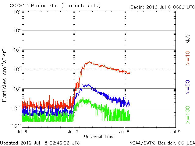 徐々に下がり続けていますが、まだ高レベルです。X1.1の影響と思われます。