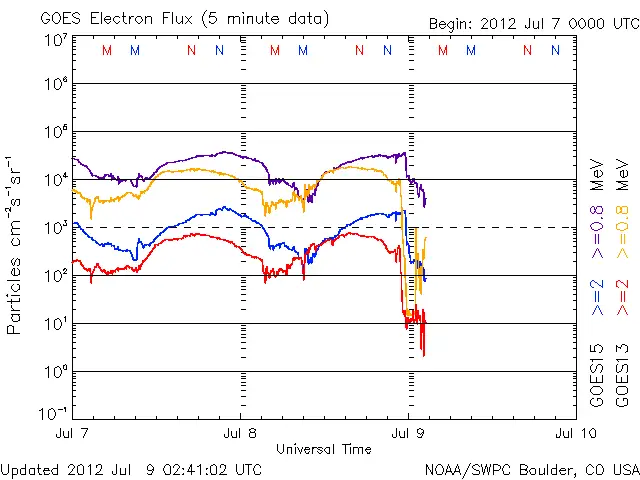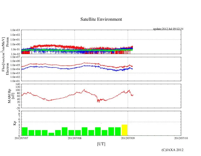 ※JAXAのETS8 MAMリアルタイム観測データのチャートは1目盛り=6時間なので、かなり見づらいです。時間の誤差に注意