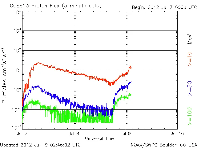 X線チャートのレベルは昨日15時(UTC)以降、急激に上がり、かなり高レベルな状態となっています。