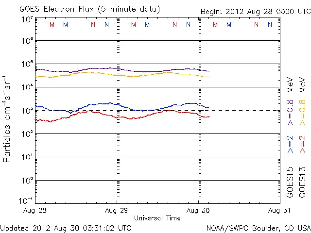●太陽フレアの発生と地球上空の静止軌道電子の動きを月末まで監視しましょう。