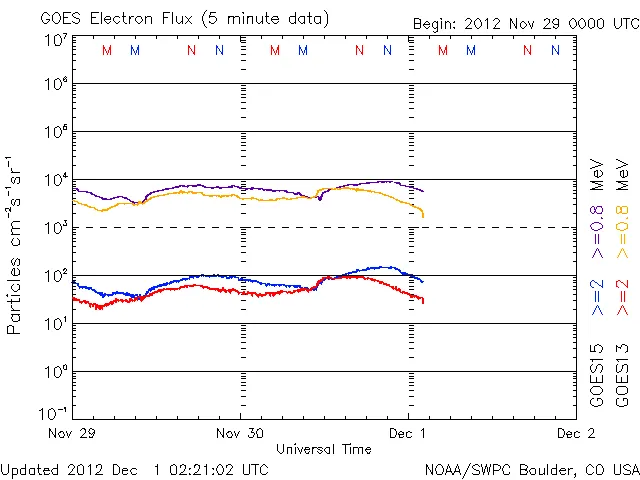 ※JAXAのETS8 MAMリアルタイム観測データのチャートは1目盛り=6時間なので、かなり見づらいです。時間の誤差に注意