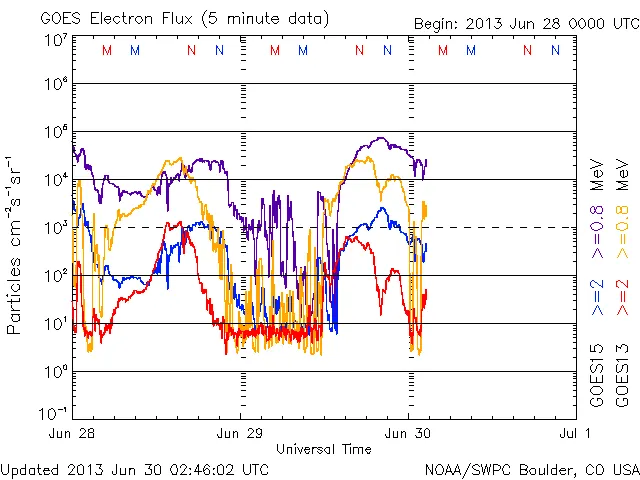 06/29 14時(UT)くらいに激しい乱れは一旦収まりましたが、20時くらいに反応があり、06/30 に入ってからも再び激しい乱れがあります。ご注意ください。