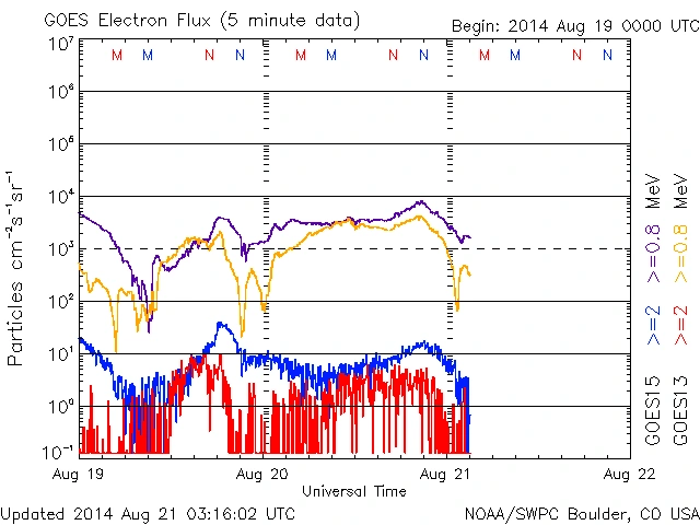 >=0.8MeVのラインに、08/20 00時頃、08/21 01時(UT)頃に反応が出ています。ご注意ください。