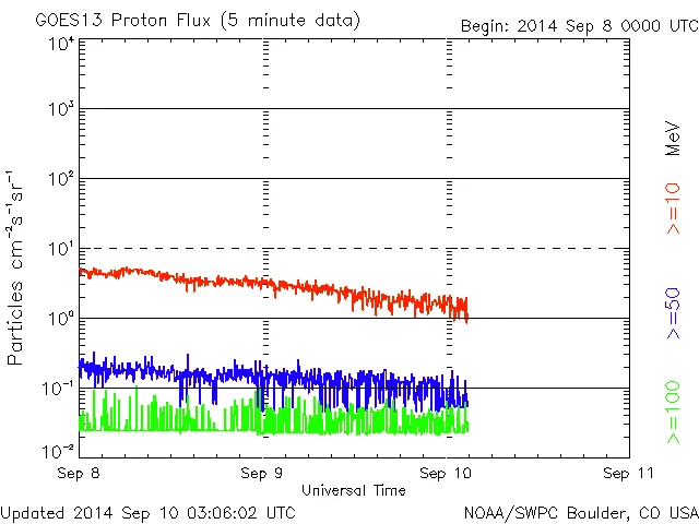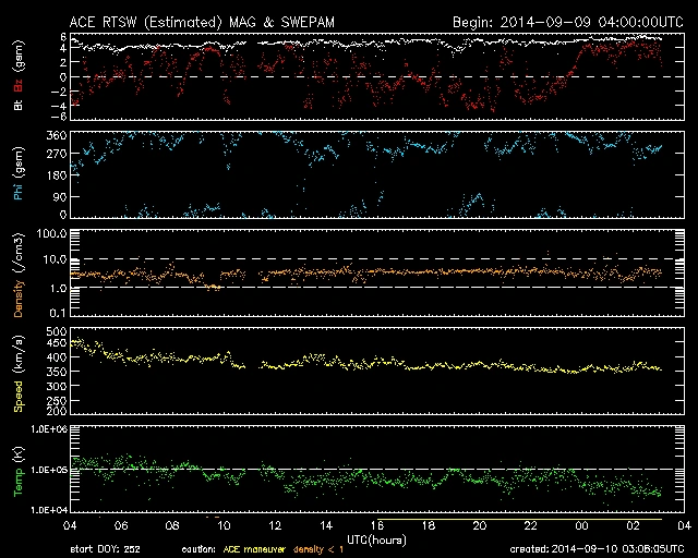09/09 23時(UT)過ぎに小さな反応がありました。CME到着予測が出されているので、今後、乱れが出るようなら要注意。