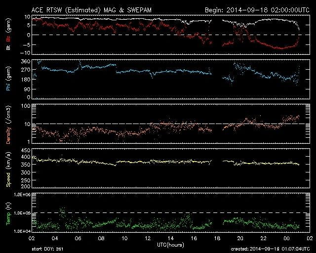 370km/s前後で推移していましたが、やや下がり、現在は350km/sで推移しています。