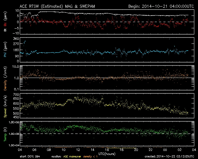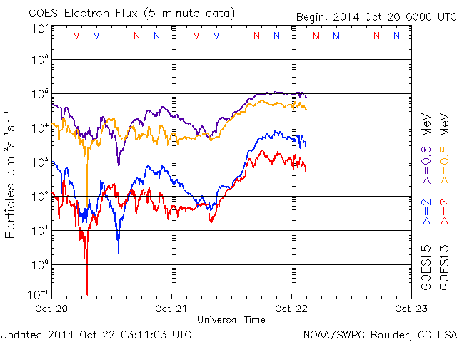 10/21 12時(UT)以降、ややギザギザしたラインになっています。10/21 17時(UT)くらいに反応がありました。
