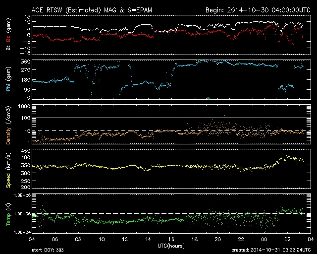 10/30 10時(UT)前後、21時前後にややギザギザしたラインになりましたが、大きな乱れや反応はありません。