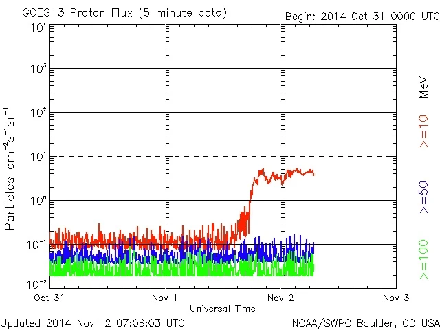 CMEは地球へは向かっていないようですが、Protonは上昇中です。ご注意ください。