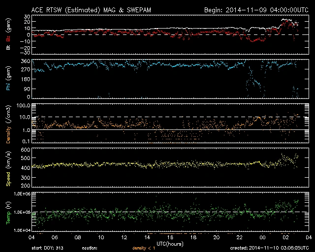 420km/s前後で推移していましたが、ここ数時間で速度は上がりました。現在は480km/s前後で推移しています(一時、500km/sを超えているようです)。